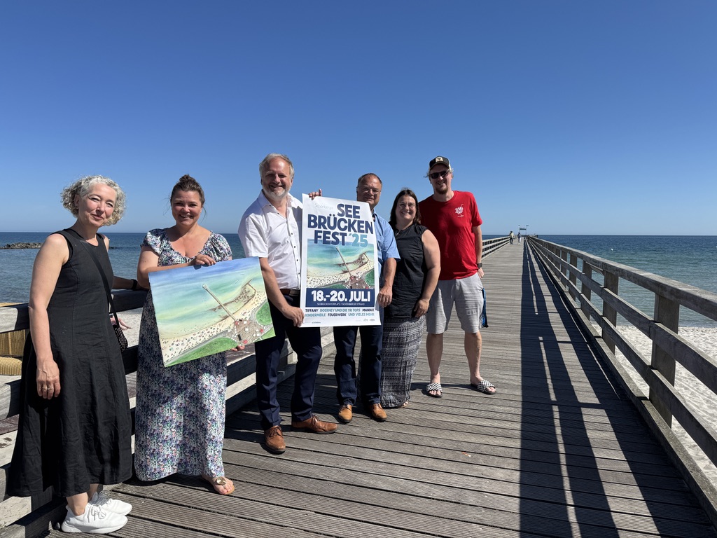 Das diesjährige Festplakat verdient einen Blick: Die Künstlerin Aleksandra Grzelka-Franke aus der Schönberger Künstlergemeinschaft „Sconeberg“ hat die Seebrücke aus der Vogelperspektive eingefangen – ein echter Hingucker.